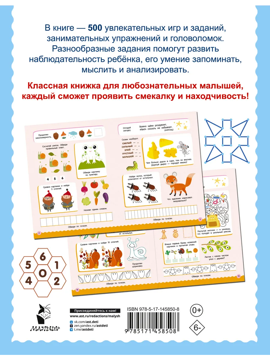 ««500 заданий для малышей» — серия, основанная на многолетнем опыте обучения дошкольников. Интересные задания в картинках развивают гибкость ума, речь, внимание, память и графические навыки.