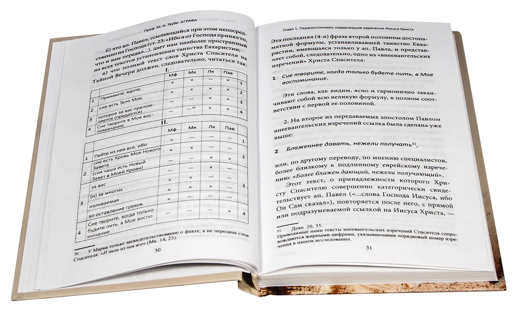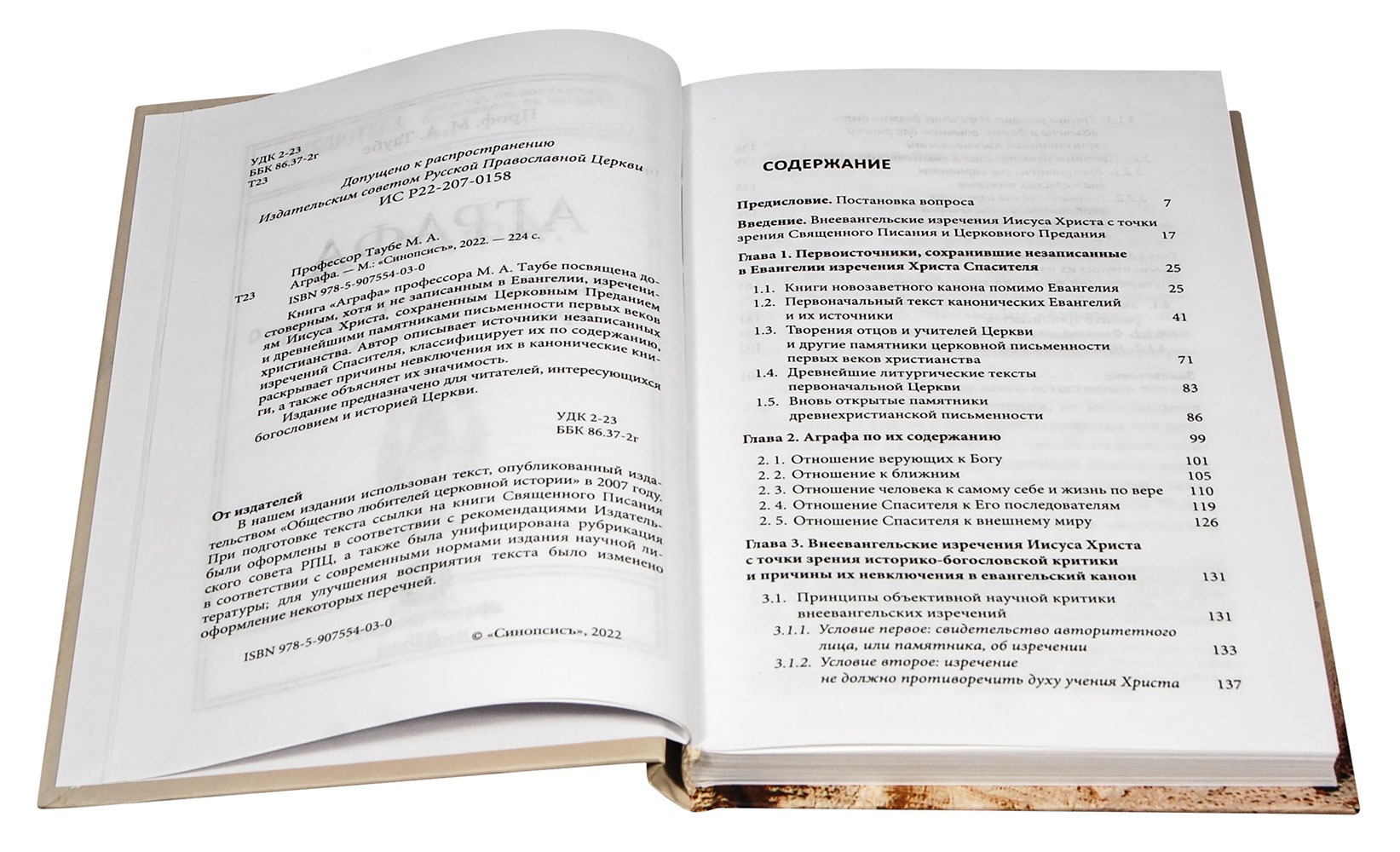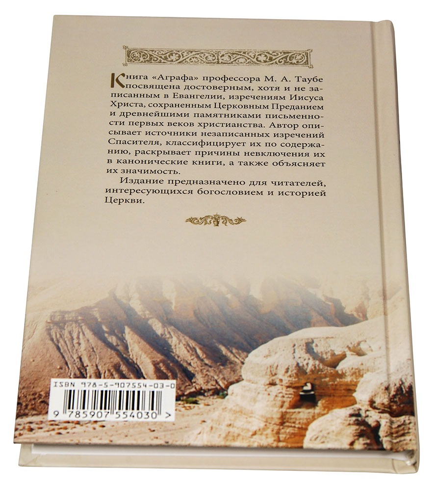 Книга «Аграфа» профессора М. А. Таубе посвящена достоверным, хотя и не записанным в Евангелии, изречениям Иисуса Христа, сохраненным Церковным Преданием и древнейшими памятниками письменности первых веков христианства. Автор описывает источники незаписанных изречений Спасителя, классифицирует их по содержанию, раскрывает причины невключения их в канонические книги, а также объясняет их значимость.