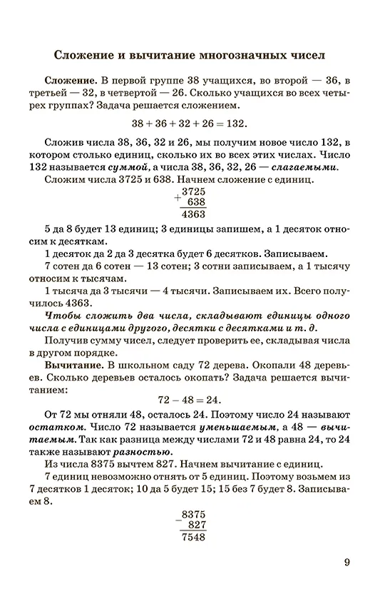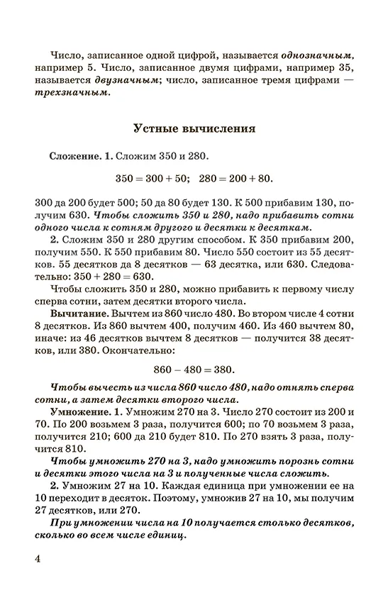 Перед вами краткое и понятное пособие для изучения математики в 3 и 4 классах. Оно не ограничивается набором примеров и задач — учебник выступает в роли последовательной инструкции, помогая ребёнку правильно выполнять сложение, вычитание, умножение и деление, формируя уверенный навык счёта.
