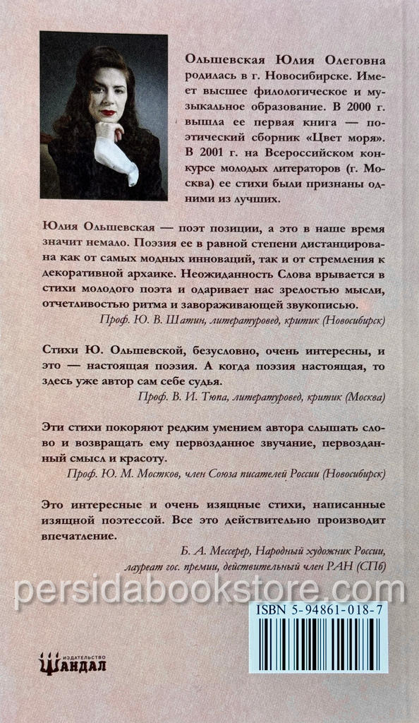 Перед вами небольшой сборник христианских стихов Юлии Ольшевской — молодой поэтессы из Новосибирска. Это вторая книга автора, в которую вошли стихотворения из разных циклов. Они получили высокую оценку в литературных кругах. Надеемся, что творчество Ю. Ольшевской не оставит равнодушными и вас.