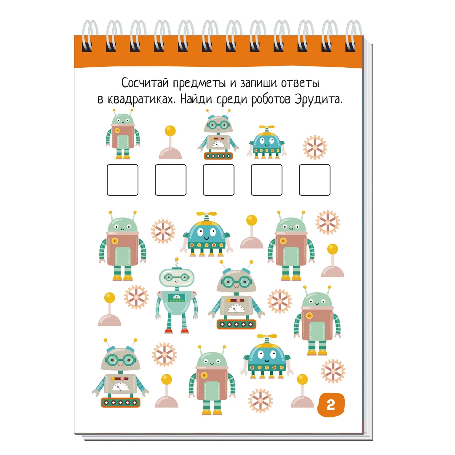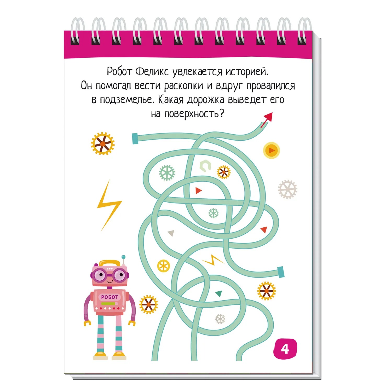 Открыв этот блокнот, ребёнок вместе с весёлыми роботами попадёт в увлекательную страну задачек на логику и счёт. Вооружившись карандашом, он будет искать закономерности, заполнять чудесные квадраты, проходить по запутанным лабиринтам, решать задачки с буквами и цифрами, рисовать и раскрашивать картинки. А в дороге или на отдыхе такой блокнот станет просто незаменим. Адресовано детям от 5 лет.