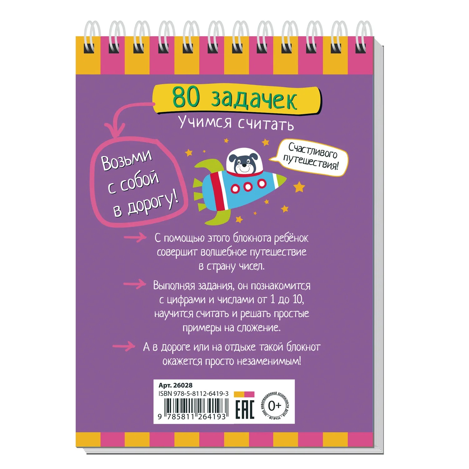 Открыв этот блокнот, ребёнок попадёт в чудесную страну счёта. Он познакомится с цифрами, научится их писать, считать предметы, решать простые примеры на сложение. Ребёнку предстоит пройти по запутанным лабиринтам, заполнить неизвестные квадраты, найти соответствия, раскрасить рисунки. В дороге или на отдыхе такой блокнот будет просто незаменим. Адресовано детям от 4 лет.