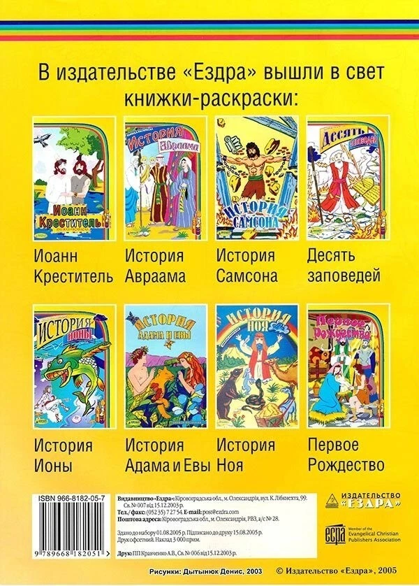 12 страниц, мягкая обложка, большой формат 25х28 см, издатель Ездра. Ваши дети смогут узнать о подвиге ветхозаветного героя Самсона. Форма книжки в виде раскраски научит ребенка навыкам рисования.