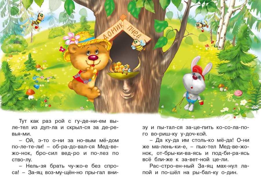 Книга «Как пчелы Мишку воспитывают» из серии «Читаем по слогам» — поучительная и добрая история. Красочное издание с большим количеством иллюстраций Ольги Сунцовой и простым, адаптированным для малышей текстом подойдёт для дошкольного возраста.