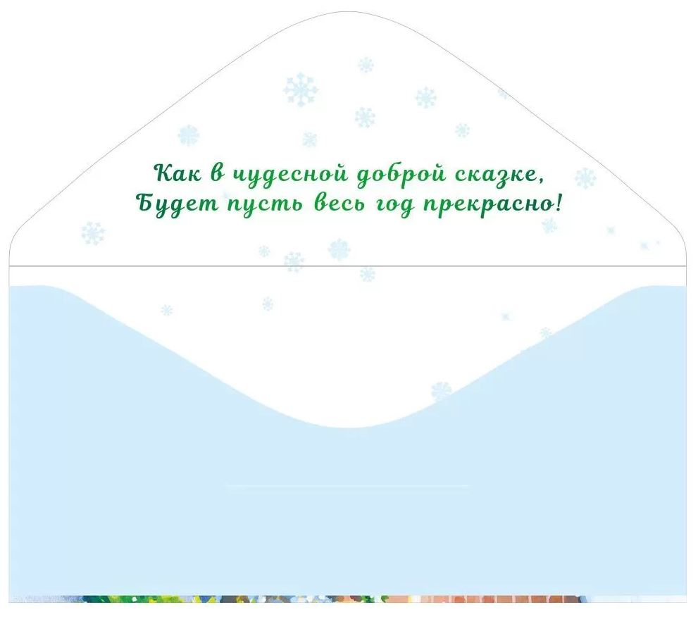 «Как в чудесной доброй сказке, будет пусть весь год прекрасно!». Подарочный конверт с текстом на обороте.