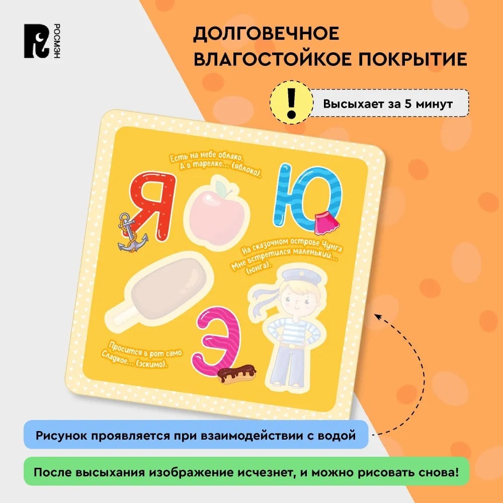 Многоразовые водные карточки-раскраски. Азбука