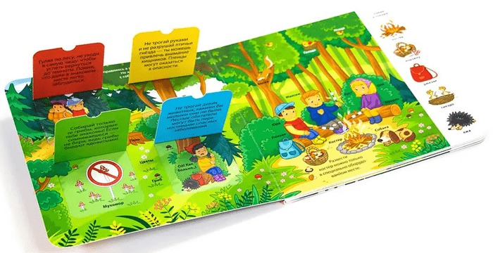 Книжка с окошками «Мои первые слова. Уроки безопасности» предназначена для познающих мир малышей. Весёлые и красочные сюжеты наглядно продемонстрируют ребёнку потенциально опасные ситуации и расскажут, что делать в этих ситуациях. На каждом развороте книги есть окошки, где спрятаны интересные факты и предупреждения. Также в книжке вы найдёте увлекательные задания на развитие внимания. Книга сделана из качественного и плотного картона. Яркая и контрастная печать делает картинки максимально насыщенными. Книгу удобно взять с собой на прогулку или в дорогу.