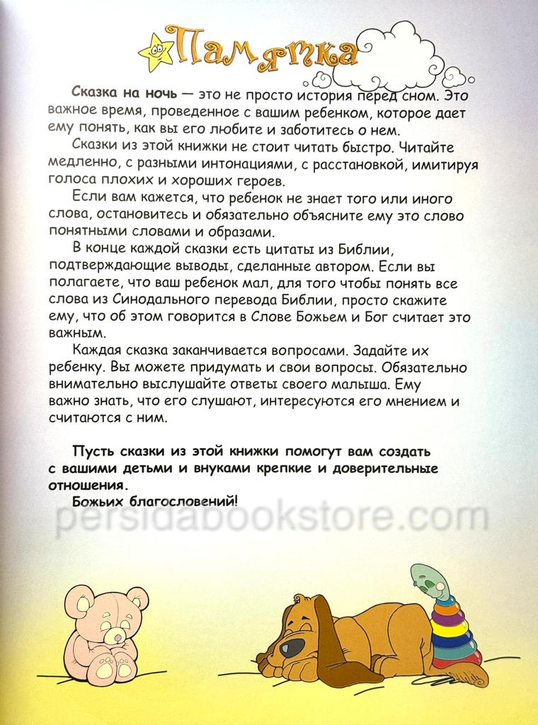 «Мудрые сказки на ночь» помогут вашему ребёнку понять, каких ценностей стоит придерживаться, откуда берётся жизненная мудрость, как относиться к вредным словам, а также многие другие истины, которые помогут ребёнку расти послушным и благословенным.