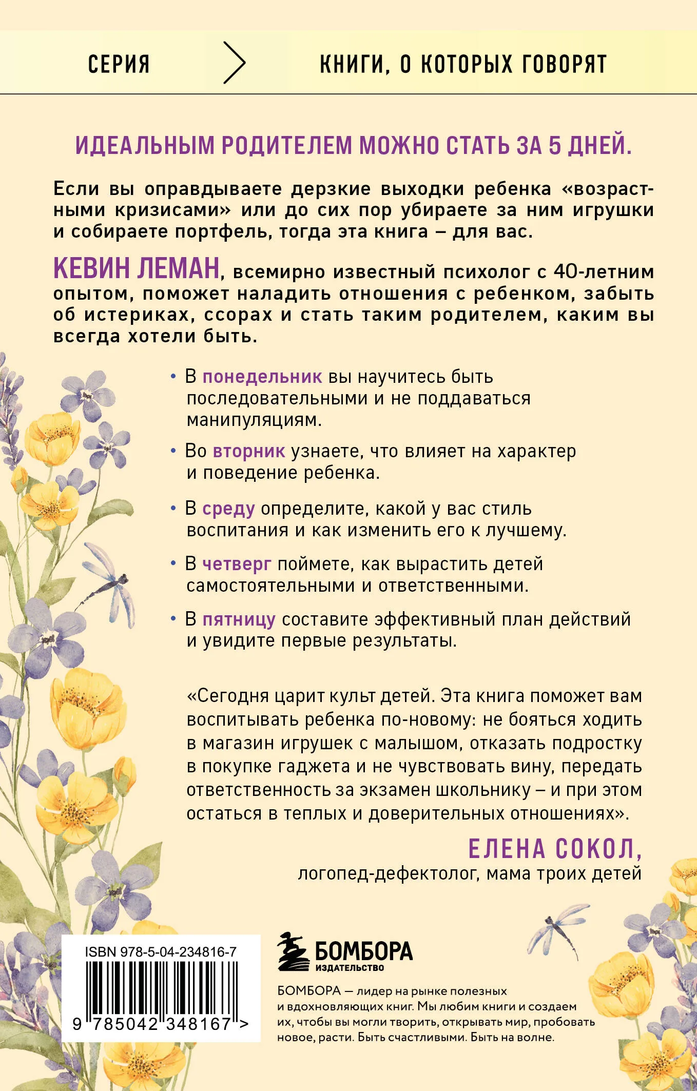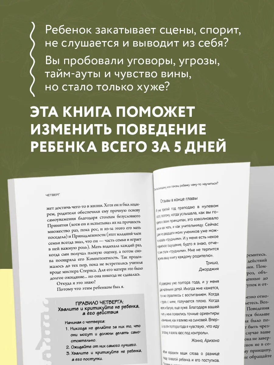Эта книга – подробное руководство для родителей, которые хотят наладить отношения с детьми, избавиться от истерик, капризов и конфликтов, а также воспитать самостоятельного и ответственного ребенка. Кевин Леман, всемирно признанный психолог и эксперт по семейным отношениям с более чем 40-летним опытом работы, представляет уникальную пятидневную программу, которая позволит шаг за шагом изменить стиль воспитания и добиться гармонии в семье. Каждый день недели посвящен отдельной теме.