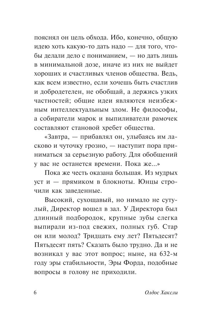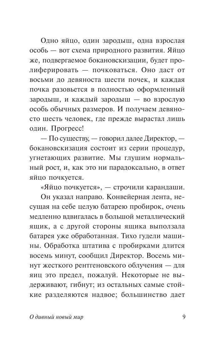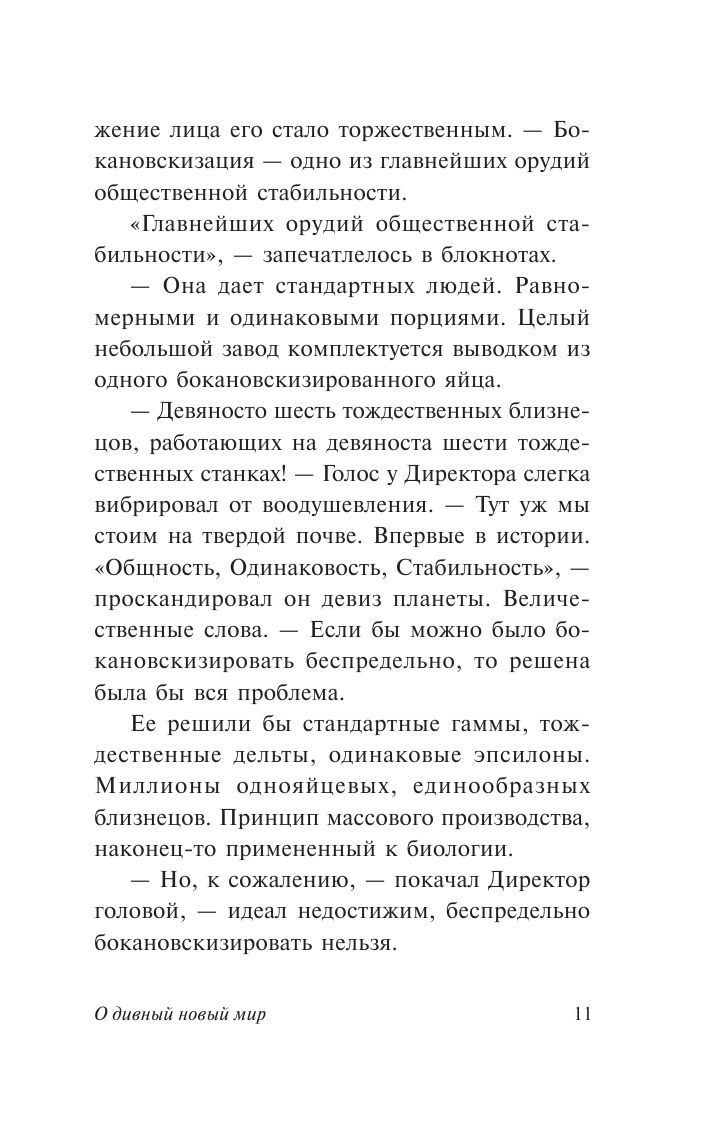 Один из самых знаменитых романов-антиутопий. Своего рода антипод «1984» Оруэлла. Никаких пыточных застенков – все счастливы и довольны. Люди выращиваются на заводах-эмбрионариумах и заранее (воздействием на эмбрион) поделены на пять различных по умственным и физическим способностям каст, которые выполняют разную работу. От «альф» – крепких и красивых интеллектуалов, существующих в единственном экземпляре, до «эпсилонов» – полукретинов, которым доступна только самая простая физическая работа, клонируемых пачками… Всеобщему счастью способствует воспитание младенцев по Павлову, «free love» и не имеющий побочных эффектов лёгкий наркотик «сома». Всё это – непреложные добродетели, закреплённые тысячами рекламных слоганов… А если и появится в этом мире дикарь, читающий всякий бред, вроде Шекспира, или кому-то из альф сома не в кайф и бабы не лечат, то от этого ничего страшного с миром не случится…