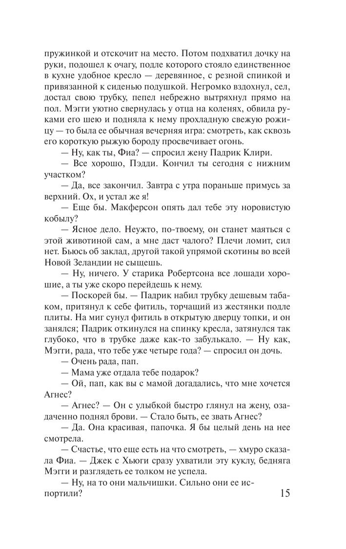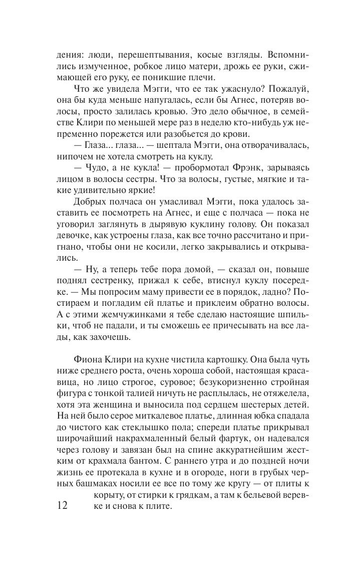 Захватывающая семейная сага, пронзительная история о беспримерной любви длиною в жизнь – роман Колин Маккалоу по праву получил всемирное признание, а блестящая экранизация 1983 года принесла ему еще большую популярность.