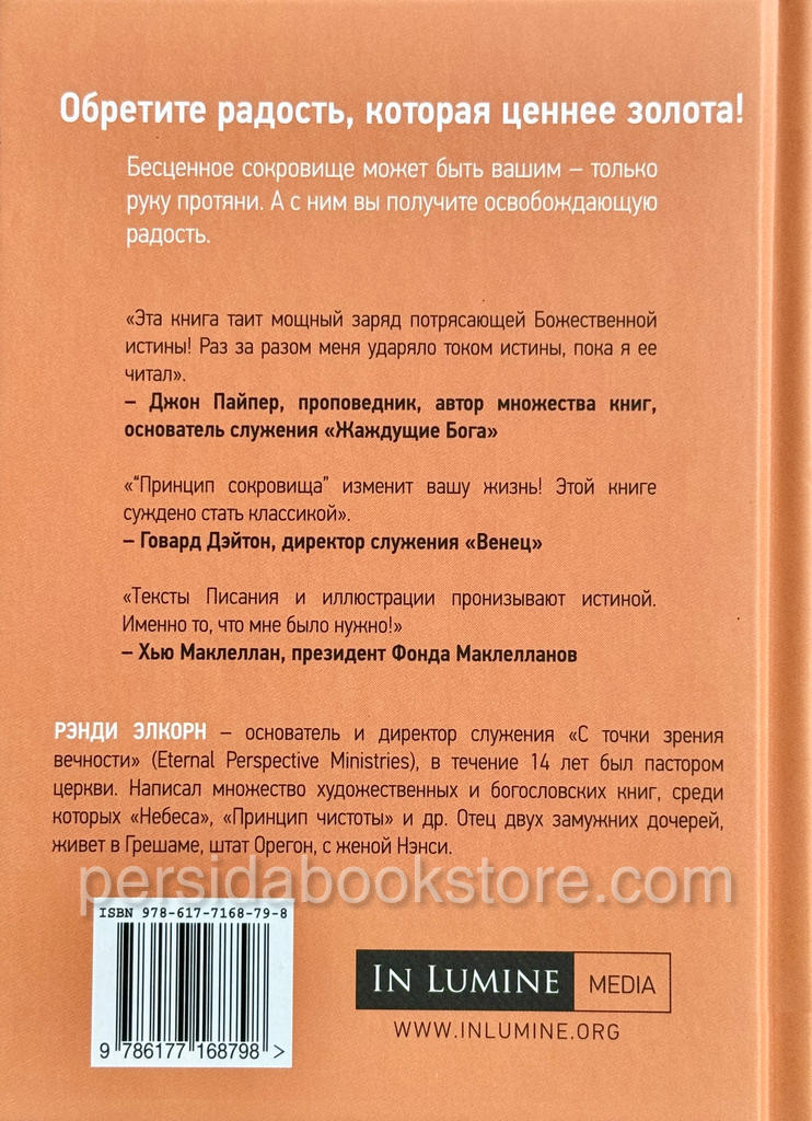 Рэнди Элкорн основывает свой Принцип сокровища на словах лучшего в мире финансового консультанта, Иисуса Христа: «Собирайте себе сокровища на небе». Автор утверждает: всё принадлежит Богу, и то, что мы называем своими средствами, на самом деле принадлежит Ему; вопрос лишь в том, что Он хочет, чтобы мы делали с Его деньгами.