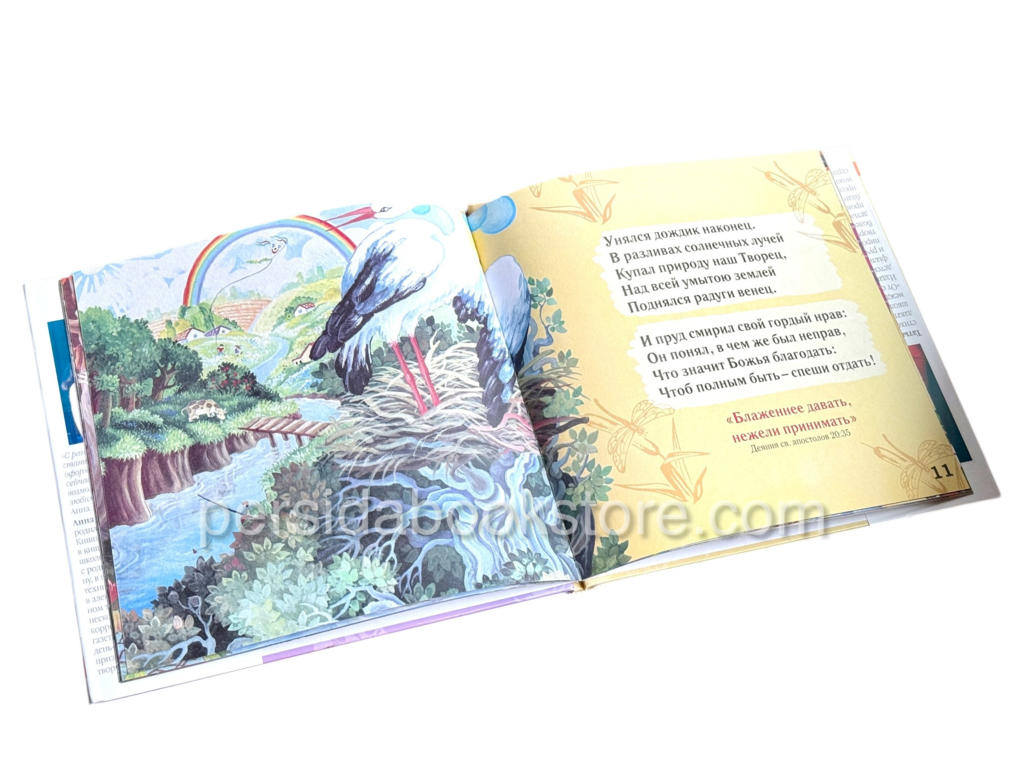 Яркие красочные рисунки. Увлекательная история в поэтической форме, яркие, красочные рисунки навсегда запечатлят в сердце Вашего ребенка один из главных библейских принципов, который гласит: «Блаженнее давать нежели принимать».