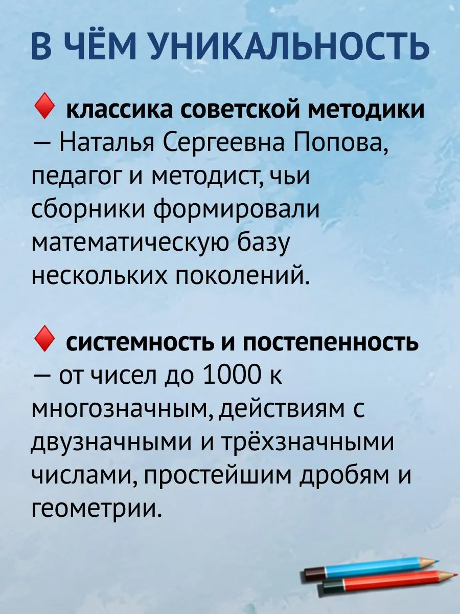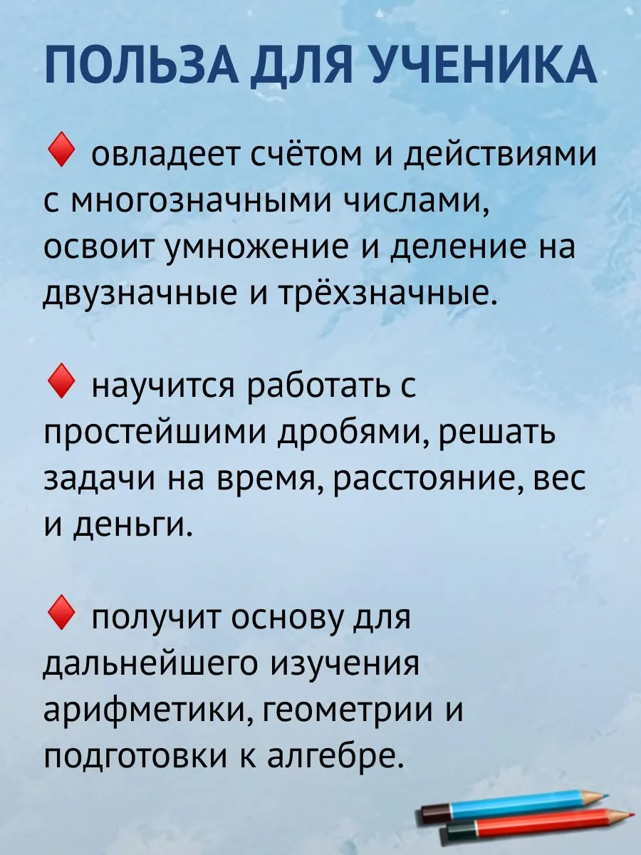 Перед вами задачник по математике для 3 класса — уникальное учебное пособие по арифметике для начальной школы, созданное по классической советской методике. Благодаря простым и последовательным задачам третьеклассник сможет самостоятельно закрепить базовые правила сложения, вычитания, умножения и деления, развивая логическое мышление и уверенность в своих знаниях.