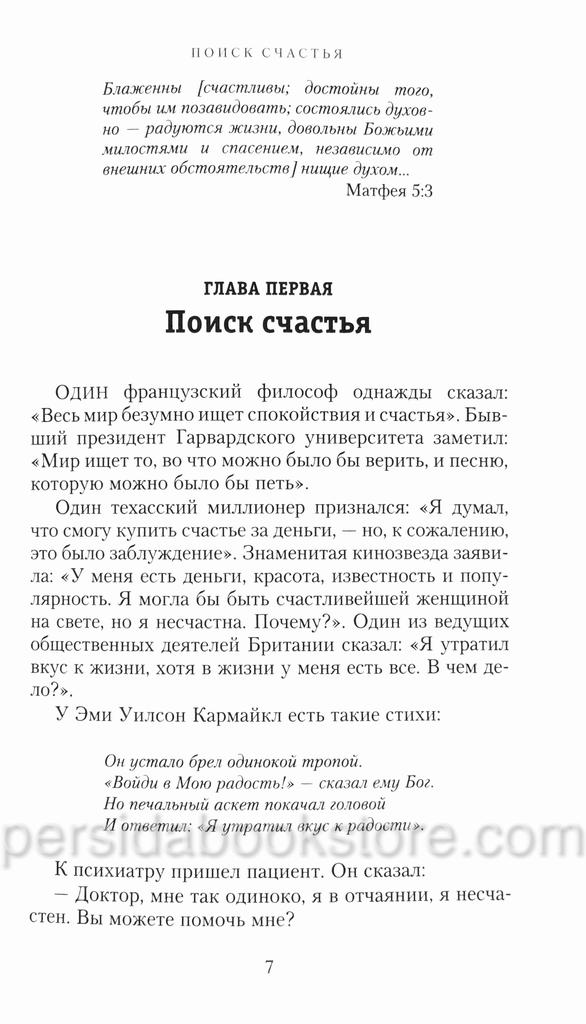 Книга посвящена толкованию заповедей блаженства из Нагорной проповеди Христа. В них заключена формула личного счастья для каждого человека. Вы убедитесь, что эти краткие слова нашего Господа глубоки и актуальны. Они имеют силу изменить вашу жизнь и указать вам путь к подлинному счастью, потому что они указывают на Христа и Его вечные правила жизни.