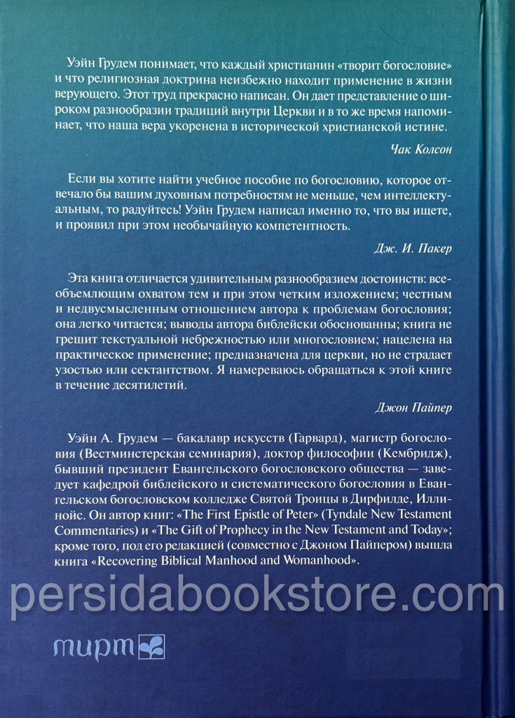 «Если вы хотите найти учебное пособие по богословию, которое отвечало бы вашим духовным потребностям не меньше, чем интеллектуальным, то радуйтесь! Уэйн Грудем написал именно то, что вы ищете, и проявил при этом необычайную компетентность».