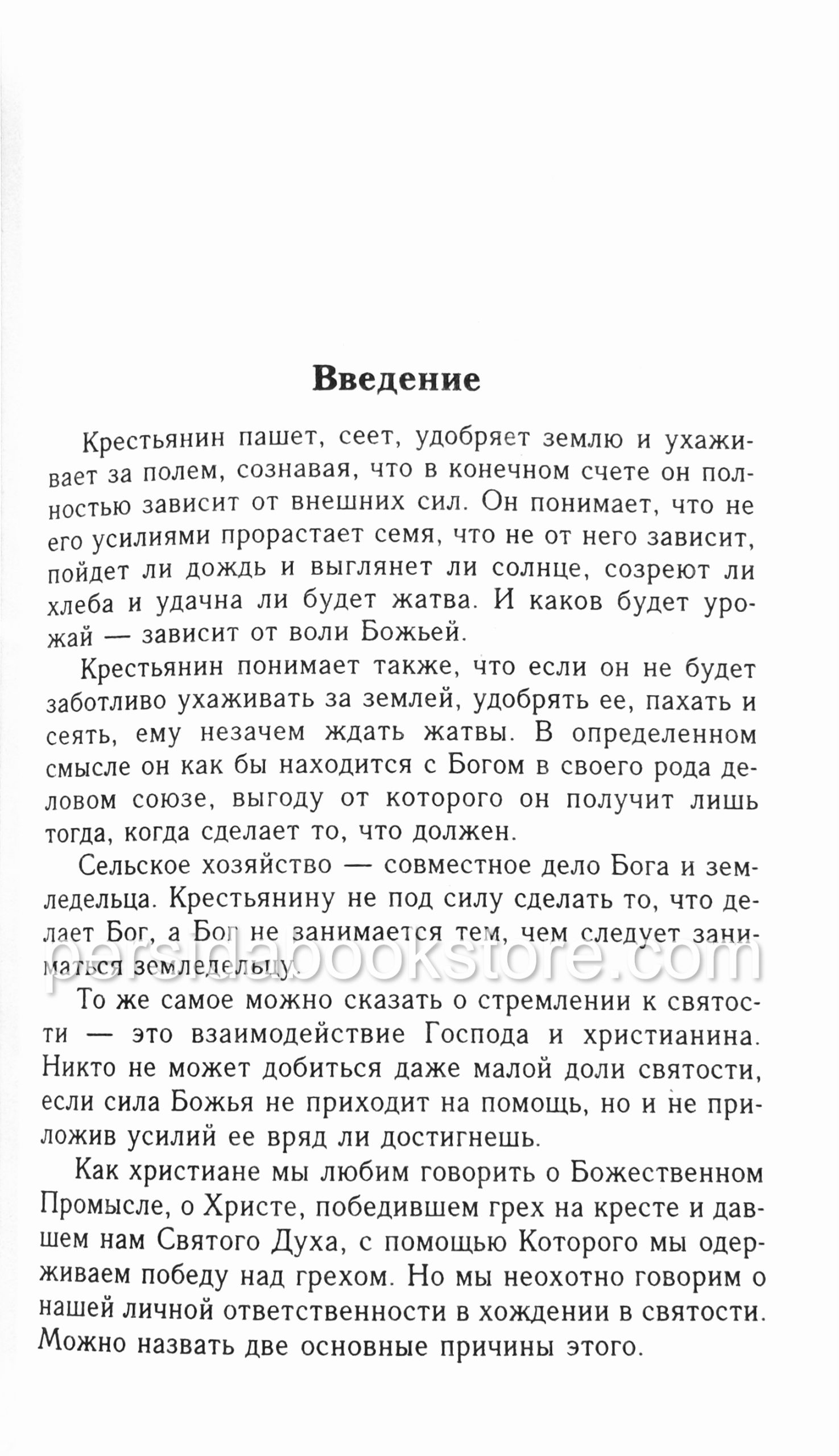 Точно то же можно сказать о стремлении к святости — это общее дело Господа и христианина. Никто не может добиться даже малой меры святости, если сила Божья не действует в его жизни, но никто ее и не достигает без собственного усилия. Бог дал нам возможность ходить в святости. Но на нас возложена ответственность — ходить; Он этого не делает за нас.