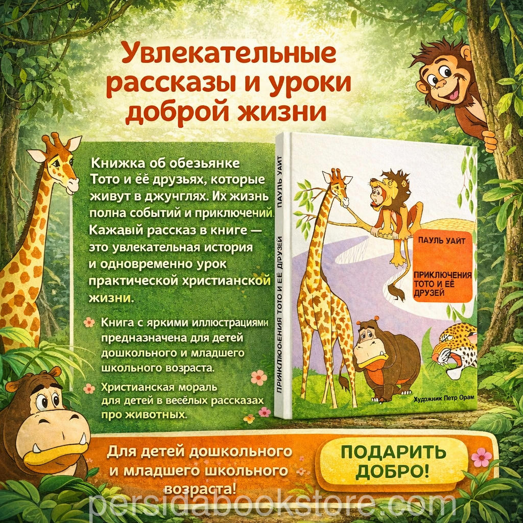 Это книжка об обезьянке Тото и ее друзьях, которые живут в джунглях. Их жизнь полна событий и приключений. Каждый рассказ в книге — это увлекательная история и одновременно урок практической христианской жизни.
