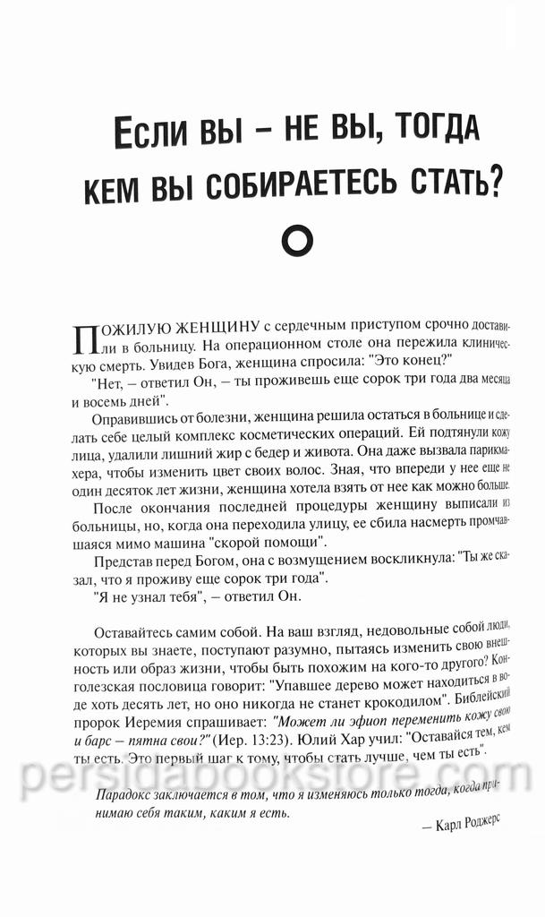 На каждой странице этой книги вы найдете много легко запоминающихся советов и рекомендаций, бросающих вам вызов вести полную жизнь, например: