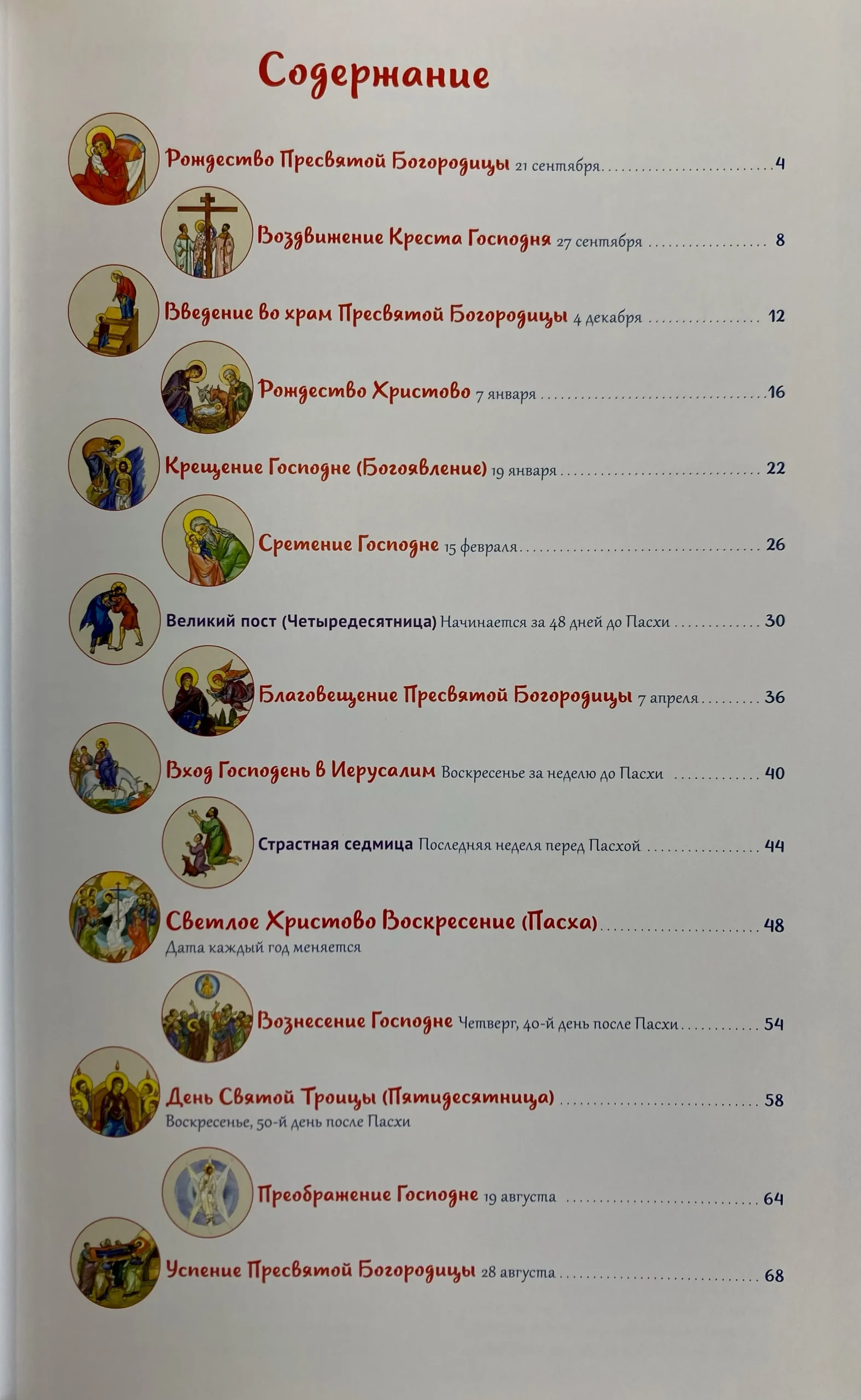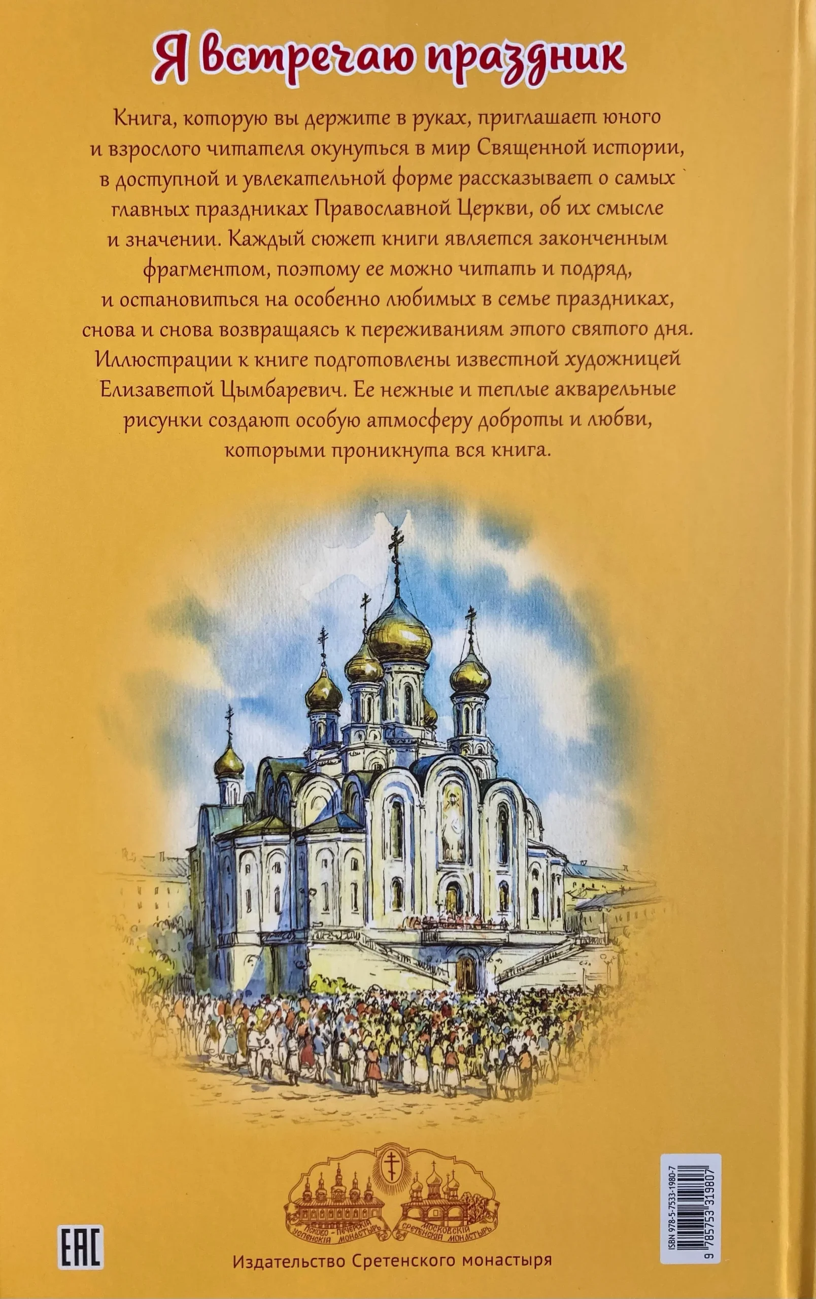 72 страницы, твердая обложка, большой формат 23х34 см, мелованная бумага, издатель Сретенский монастырь. 2021 г. Книга «Я встречаю праздник» приглашает юного и взрослого читателя окунуться в мир Священной истории, в доступной и увлекательной форме рассказывает о самых главных праздниках Православной Церкви, об их смысле и значении. Каждый сюжет книги является законченным фрагментом, поэтому ее можно читать и подряд, и остановиться на особенно любимых в семье праздниках, снова и снова возвращаясь к переживаниям этого святого дня. Иллюстрации к книге подготовлены известной художницей Елизаветой Цымбаревич. Ее нежные и теплые акварельные рисунки создают особую атмосферу доброты и любви, которыми проникнута вся книга.