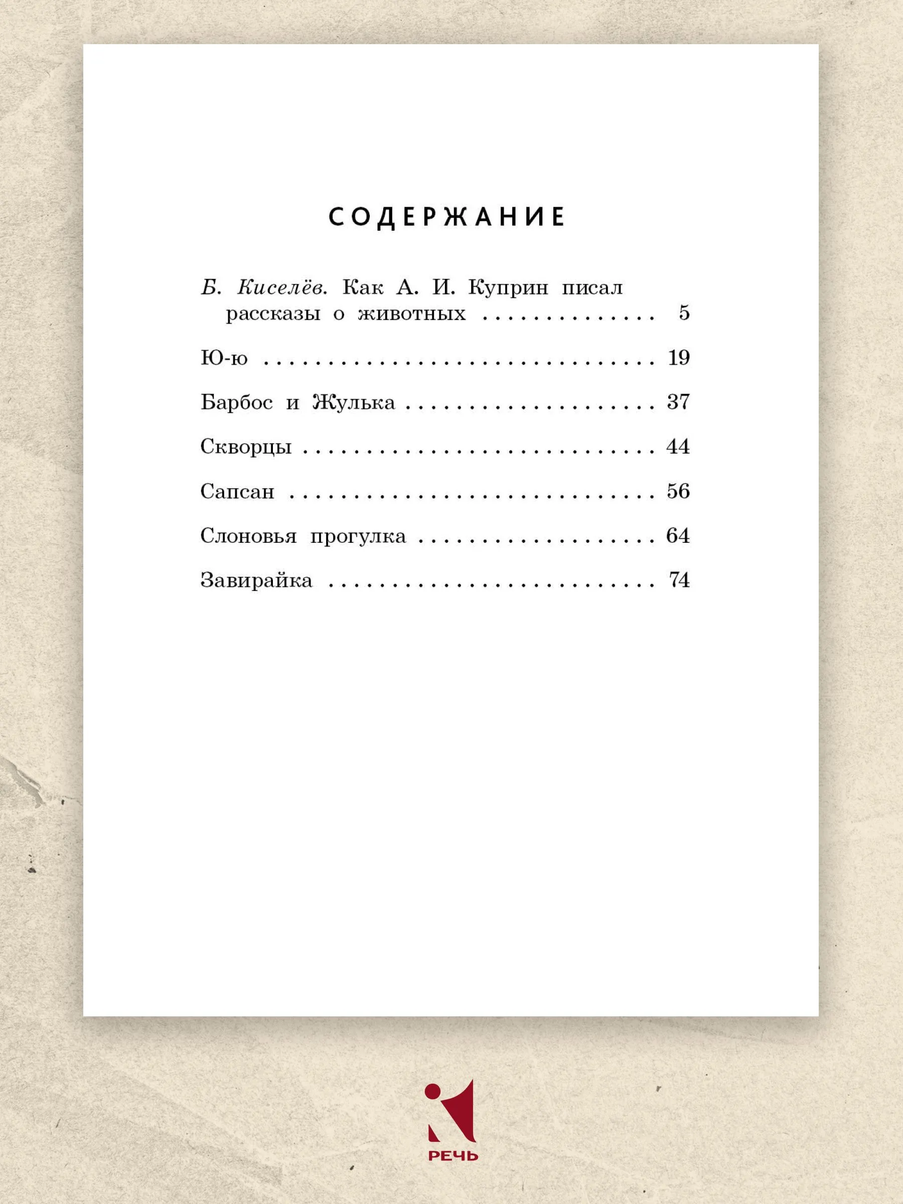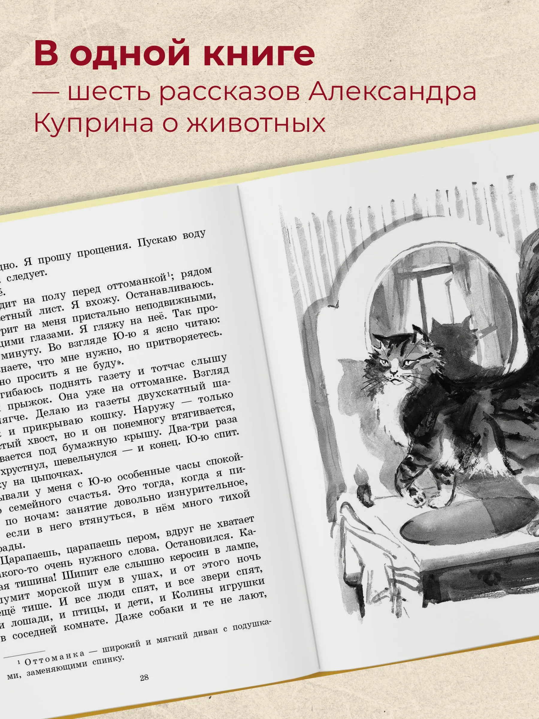 В этот сборник вошли шесть рассказов Александра Ивановича Куприна — классика отечественной литературы, который не только обладал великолепным талантом описывать русскую природу, но и невероятно сильно любил животных. Писателю самому доводилось немало заботиться о зверях и птицах, наблюдать за ними и всё больше узнавать их привычки и характер. У каждой собаки, кошки, лошади или птицы — «своя особенная душа, совсем как у людей», считал Куприн.