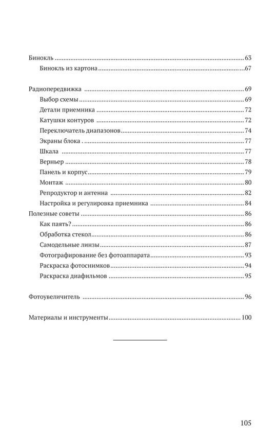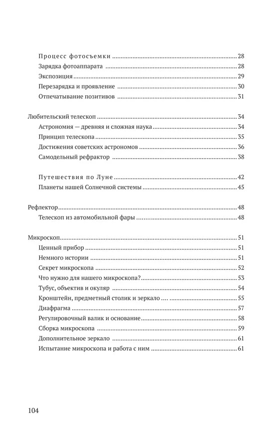 Умение своими руками создавать простые инструменты и приборы, которые пригодятся в быту, — важное качество для всех детей, и развивать его надо как можно раньше. В этом вам и поможет эта книга. Изучив ее, ваш ребенок узнает, как с помощью лишней автомобильной фары увидеть Луну или определить погоду, используя обычную толстую нить. Из подручных материалов он сможет собрать микроскоп или смастерить настоящий пленочный фотоаппарат и самостоятельно проявлять фотографии в домашних условиях. Издание представляет собой тематических сборник емких и доступных инструкций по тому, как и из чего делать разные предметы из области оптики или электроники. Для простоты каждая инструкция сопровождается понятными пошаговыми иллюстрациями и поясняющими комментариями. По книге ребенок сможет заниматься как вместе с родителями, так и самостоятельно.