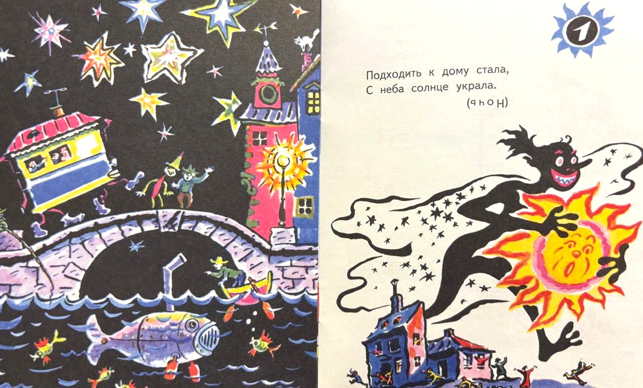 В этой книге собраны веселые и остроумные загадки, каждая из которых — целая история в картинках, смешная и поучительная. Придумал их замечательный детский поэт Иван Демьянов, стихи которого любит не одно поколение маленьких читателей, а смешные и выразительные иллюстрации нарисовал знаменитый детский художник Борис Калаушин.