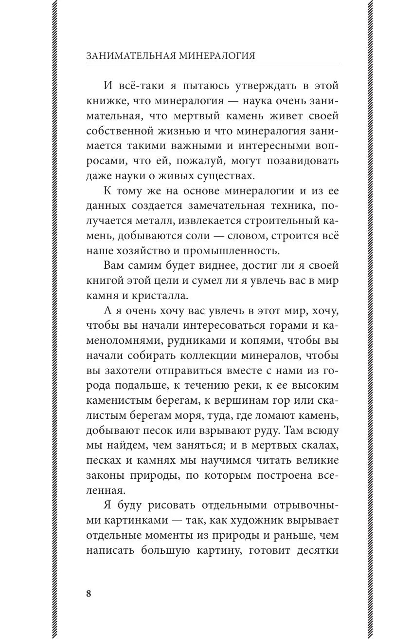 Классик научно‑популярной литературы, академик АН СССР А. Е. Ферсман приглашает увидеть планету глазами минералога — от кристаллов на подоконнике до алмазных трубок, рудников и метеоритов. В книге — рождение камня, рост кристаллов, драгоценные и технические минералы, «камень на службе человека», полевые наблюдения и домашние опыты: вы поймете, как находить, узнавать и разумно коллекционировать минералы.