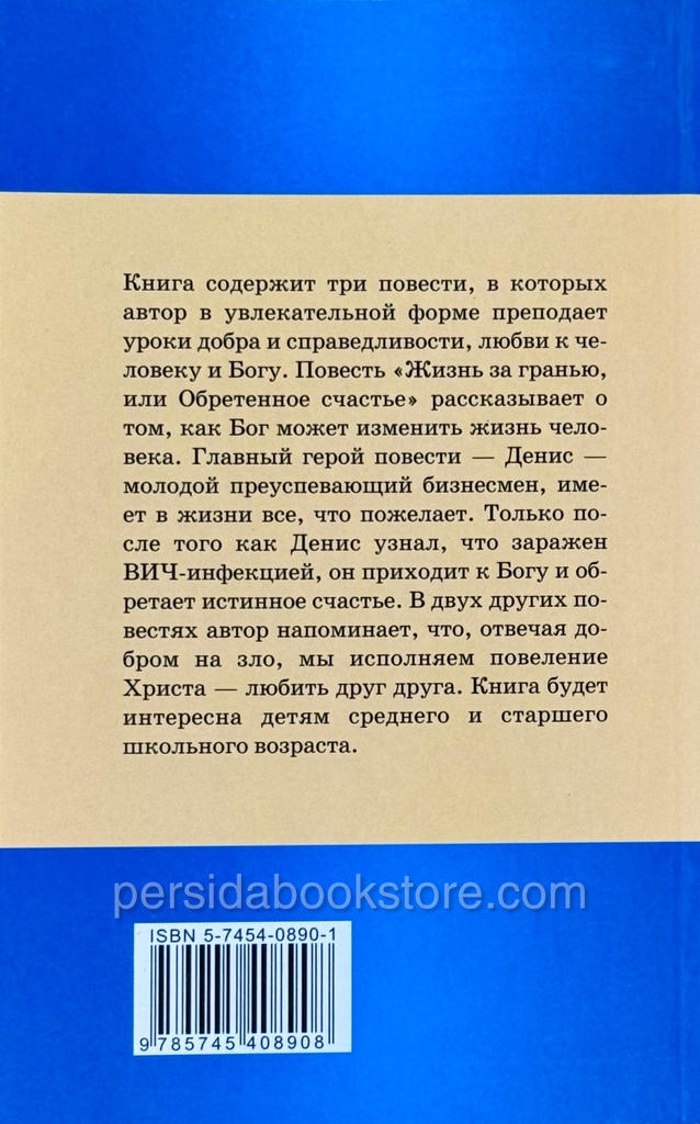 В книгу вошли три повести, в которых автор в увлекательной форме преподает уроки любви, добра и справедливости. Денис — главный герой повести «Жизнь за гранью, или Обретенное счастье» — молодой преуспевающий бизнесмен, имеет в жизни все, что пожелает. Только после того, как Денис узнал, что заражен ВИЧ-инфекцией, он обращается к Богу и обретает истинное счастье.